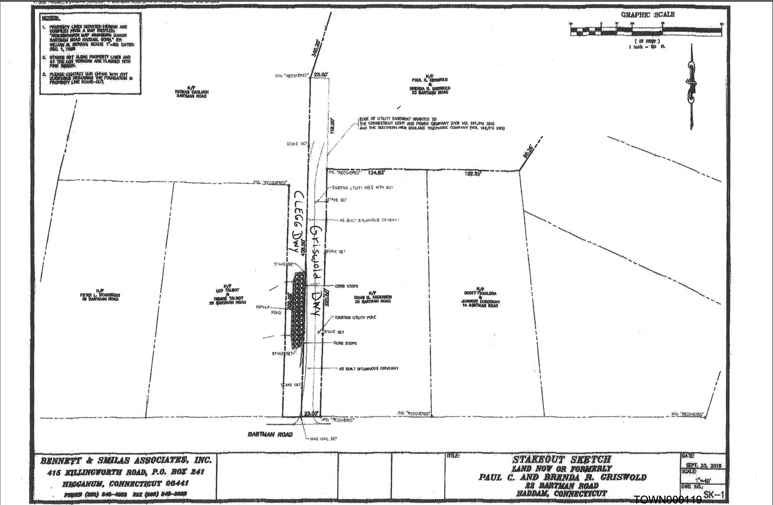 Furthermore, the Griswolds have told him he can’t use their driveway to access his property, despite the fact that a portion of it is allegedly located on his property, and despite the fact that Clegg found proof of a town-approved plan which he says indicates the driveway was meant to be a communal driveway, shared between the Griswolds’ and the original owners of Clegg’s parcel.